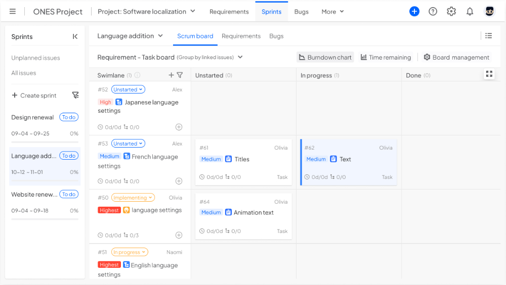 ONES Project is an AI-ready, full-lifecycle project management and task collaboration tool. It serves as the core of the ONES Platform, supporting Agile, Scrum, Waterfall, and DevOps methodologies in a single system. Seamlessly integrated with ONES Wiki and ONES TestCase, it enables teams to manage requirements, tasks, bugs, and sprints in one place.